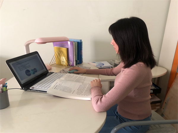 医学英语教研室新入职赵凯杨老师:对于从未涉足过的“线上教学”,对自己可以说是一种“磨砺”。即将开始的“特殊课堂”上,没有熟悉的三尺讲台,没有熟悉的方块黑板,只有面前的笔记本电脑和手掌大的鼠标。为此医学英语教研室通过组织自学网络教学线上培训课程,集体语音会议,集体网上备课等形式探索出了一种模式:采用“智慧树翻转课直播+线上任务与考核+线上答疑(智慧树翻转课群组、 QQ 群、微信群、钉钉等)”。总体思路为学生(根据教师提供的教学资源和任务)自主学习为主、教师在线答疑为辅的教学模式。