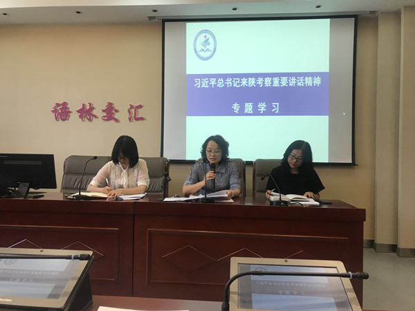6月3日下午,外国语学院党总支组织习近平总书记来陕讲话精神专题学习会议。党总支书记尚瑜传达了《中共西安医学院关于认真学习贯彻习近平总书记来陕考察重要讲话精神的安排》、《关于各级党组织和全体党员干部学习贯彻习近平总书记来陕考察重要讲话精神的工作安排》文件精神,并就总支学习活动作出安排部署。她表示,在决胜全面建成小康社会、决战脱贫攻坚之年,在统筹推进新冠肺炎疫情防控和经济社会发展的关键时刻,习近平总书记时隔五年再次来陕考察指导工作,充分体现了习近平总书记对陕西工作的高度重视,是“一种大思考、一种肯定、一个大气象、一种大情怀”,是对全省人民的关心厚爱。全院师生一定要提高政治站位,结合“三会一课”、主题党日、主题团日、主题班会等形式,认真学习、充分领会习近平总书记重要讲话的科学内涵和精髓要义,用西迁精神激励自己干事创业的情怀,胸怀大局、无私奉献、弘扬传统、艰苦创业,积极投身学院的发展建设,担起培养社会主义合格建设者和接班人的重任。教师要结合课堂思政,在讲课中渗透讲话精神,加强思想文化建设,塑造学生发展软实力,引导学生后置爱国主义情怀,自觉把个人理想追求根植于国家和民族发展伟业,努力成为担当民族复兴大任的时代新人。学做结合,全体教职员工要提高运用科学理论武装思想、推动工作的能力,立足本职,尽职履责,做好复学复课、疫情防控、毕业生就业等工作,将总书记的重要讲话精神落到实处。(外国语学院党总支 文/图 高翔)