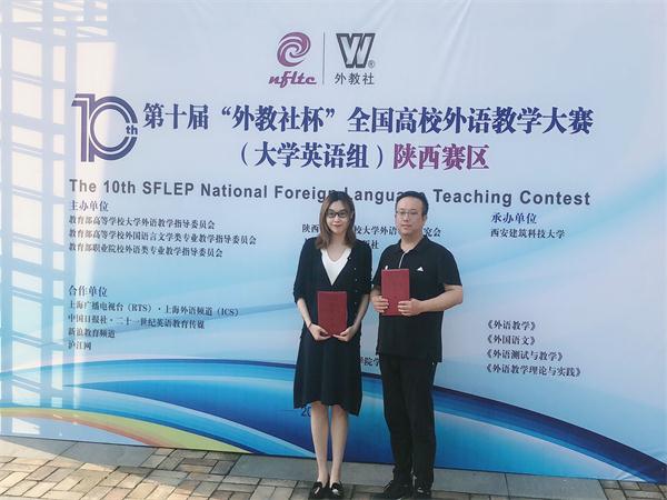2019年6月29日至30日,由教育部高等学校大学外语教学指导委员会、教育部高等学校外国语言文学类专业教学指导委员会、教育部职业院校外语类专业教学指导委员会和上海外语教育出版联合举办的第十届“外教社杯”全国高校外语教学大赛(陕西赛区)于西安建筑科技大学举行,来自我省40多所高校的综合组40名、听说组31名的大学英语教师参加了本次比赛。经过激烈的角逐,严苛的评选,我校卢杨夏蒙老师和王博老师分获陕西赛区大学英语综合组及视听说组三等奖。