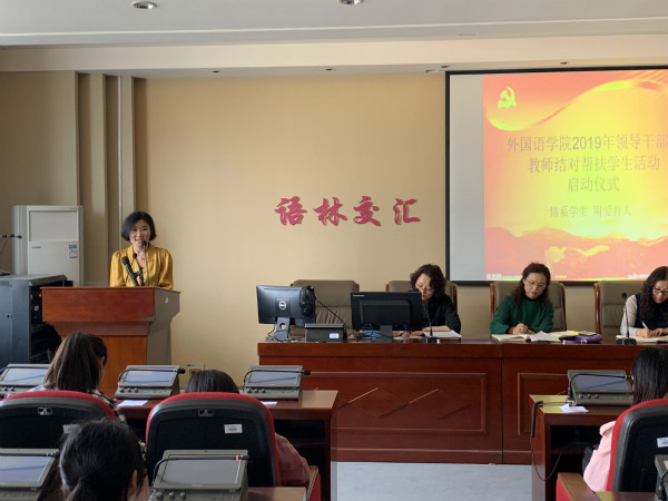 首先尚瑜副书记解读《外国语学院2019年领导干部和教师结对帮扶学生活动方案》,从活动开展的意义、帮扶内容、帮扶方式及工作要求等几个方面就学院帮扶工作做了周密部署和安排。并强调,共同富裕是社会主义的本质规定和奋斗目标,也是我们党的重要使命。所有教职工要高度重视,围绕激发学生成人成才志向、帮扶学生学习生活、关怀学生心智情感、启迪学生知恩感恩四项重点内容,扎实开展帮扶工作。
