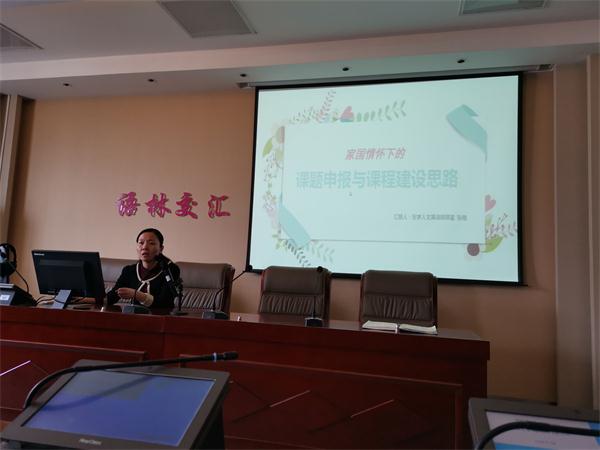 2019年4月3日外国语学院副教授张艳老师作了题为“家国情怀下的课题申报与课程建设思路”的学术报告,分享了在科研申报、课程建设和人才培养等方面的反思,报告会由外国语学院副院长薛英利主持。