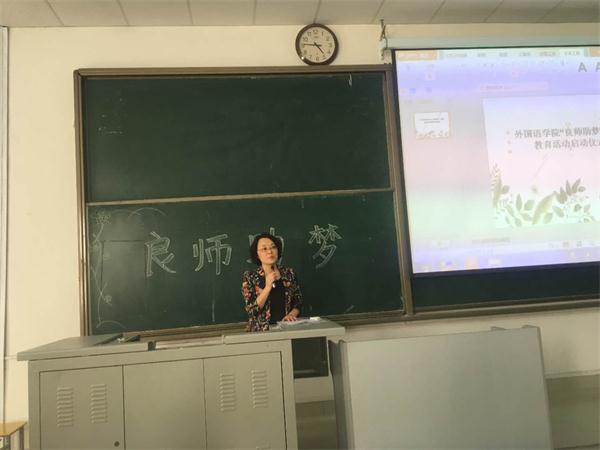 为贯彻落实习近平新时代中国特色社会主义思想政治工作会议精神,推动外国语学院全程育人格局,构筑师生共同成长发展共同体,不断提升人才培养针对性。引导教师教书与育人兼顾,发挥专业课教师在学生学习、生活各方面的指导作用。4月17日下午,外国语学院在阶梯教室104召开 “良师筑梦”主题教育活动启动仪式。外国语学院党总支副书记尚瑜、专业课教师陈晨,学生科科长周豪,2018级全体学生参加了启动仪式,仪式由团总支负责人索妮主持。