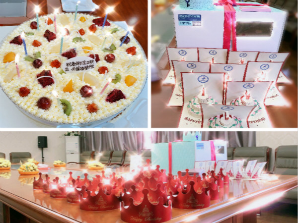 随后寿星们点燃生日蜡烛,在“生日快乐”的歌曲声中许愿、吹蜡烛、切蛋糕。生日会在一片欢乐、温馨中进行。