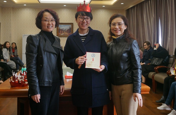 在生日会上首先外国语学院院长陈蓁向在座的“寿星们”表达了真挚的祝福,并与外国语学院党总支副书记尚瑜为每一位过生日的老师佩戴生日帽、发送生日贺卡。