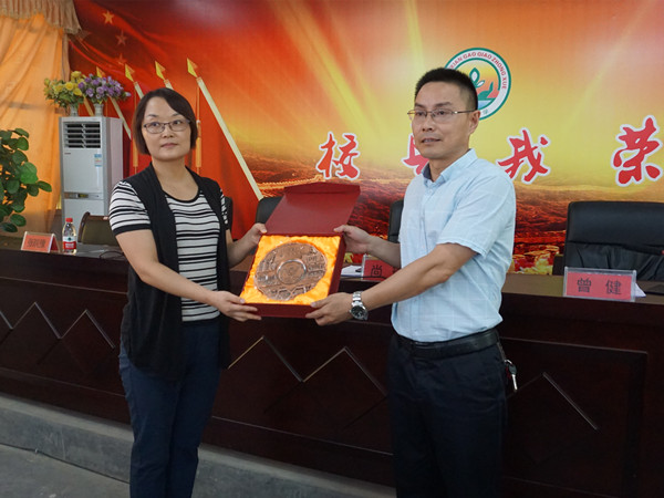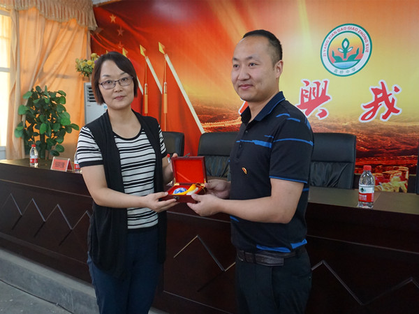 启动仪式后,西安医学院外国语学院党总支副书记尚瑜分别向紫阳县团委、高桥镇政府及高桥镇初级中学赠送西安医学院的纪念礼品。(外国语学院 文/宋璐玥 图/杨欣悦)
