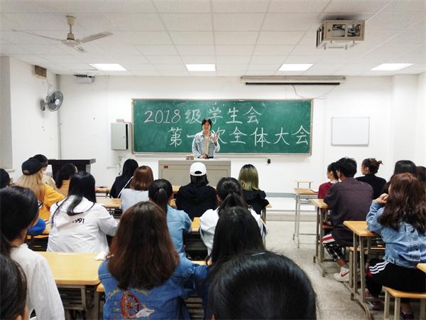 为增进外国语学院新一届学生会成员对学生会的认识,促进各部门干事之间的交流,2018年9月26日下午,外国语学院学生分会在立行楼407教室召开第一次全体大会。本次大会由外国语学院学生分会副主席任小霞主持,出席会议的嘉宾有团总支书记张皖豫、学生会主席白寇君杰、常务副主席雷乔、副主席云惠雪、蒋颖以及各部门部长。