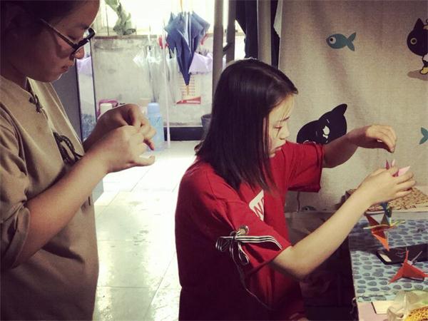 学生们在宿舍折千纸鹤