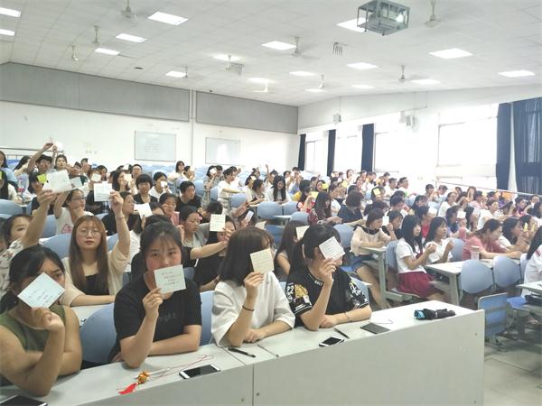 活动伊始,主持人张舒默介绍了本次团日活动的内容及意义,播放有关端午节的视频。进入端午知识竞赛环节,同学们积极参与,踊跃举手抢答,优胜者获得了精致的小礼物。学习部干事给同学们分发明信片,每位同学在明信片上写下自己对远方亲友想说的话。敞开的明信片只够书写寥寥几笔,但足以带去我们深深的思念和祝福。