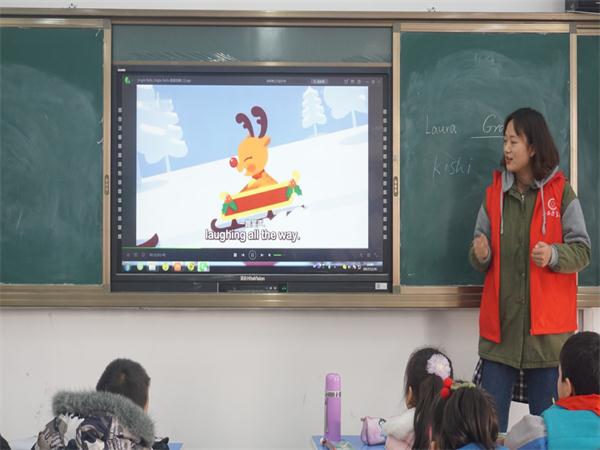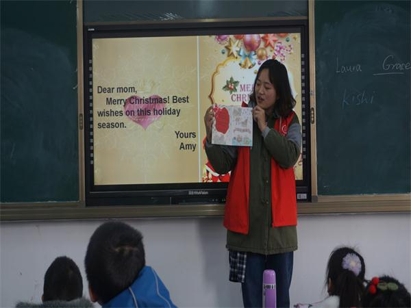 志愿服务队一行于26日下午到达夏家堡小学。外教Millie首先和小朋友们打招呼并送上英语系精心准备的小礼品,小朋友们用不太娴熟的口语争先恐后向Millie问好,道谢。随后志愿者们用讲故事的形式展现不同国家的圣诞狂欢,小朋友们聚精会神的倾听并积极主动的配合,课堂气氛活跃而有序。志愿者们给小朋友们分发准备的圣诞贺卡,罗列出了经典祝福语,小朋友们互赠贺卡,学习和感受到了西方国家庆祝圣诞的习俗和氛围。此次志愿服务活动在小朋友们的欢声笑语中圆满结束。