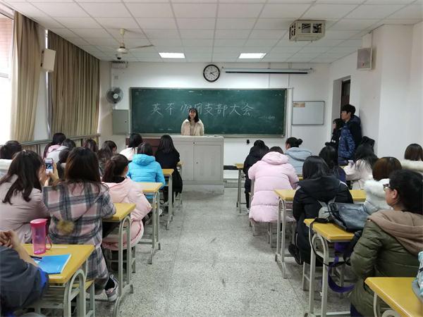 为深入学习贯彻党的十九大精神,加强各团员青年对习近平新时代中国特色社会主义思想的学习,英语系积极响应校团委要求,号召广大团员青年将十九大精神与自身学习生活相结合,分享自己学习党的十九大精神的心得体会。英本1712团支部、英本1713团支部、英本1714团支部、英本1715团支部于12月28日分别在立行楼404、405、406、407教室开展团支部大会。