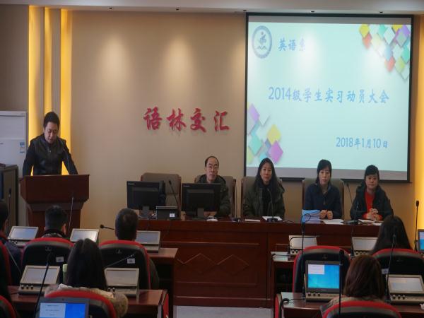 为加强对实习学生的管理和安全教育,确保实习任务安全顺利完成,2017年1月10日上午9时,我系于系学术报告厅组织召开2014学生实习动员大会。系党总支副书记陈旭华、系副主任薛英利、系教学科科长毛婧、校团委副书记、1407班辅导员辅李美玥及2104级全体学生参加了此次会议。会议由系学生科科长周豪主持。