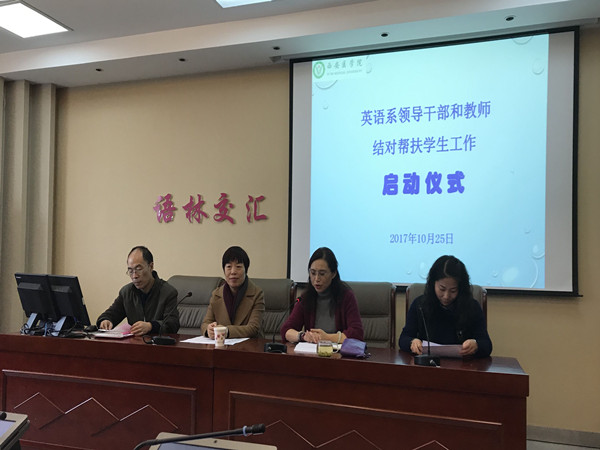 英语系副主任薛英利宣读“一对一”帮扶名单,各位教师及帮扶对象相互认识。她希望通过此项工作的落实,能够激发学生成才的志向,促进同学们全面健康的成长。