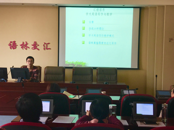 2017年11月8日下午,英语系全体教师在系报告厅举行了2017年度国内外访学专题报告会。报告会由陈蓁主任主持,青年教师宋元源、陈晨、张艳、刘琦等依次做了精彩纷呈的报告汇报交流。