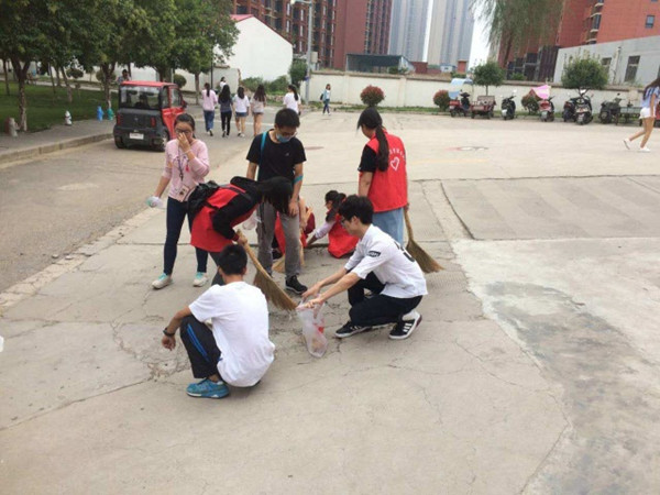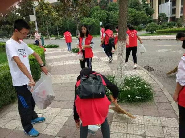 为迎接西安医学院第一届党代会的召开,英语系志愿服务队于2017年9月24日下午2点开展了“喜迎党代会,携手创文明”的志愿活动,本次活动以清扫校园,美化环境的形式展开。志愿服务队的同学们分别对立行楼周围、图书馆前、教学楼及生活区小花园进行了彻底清扫。