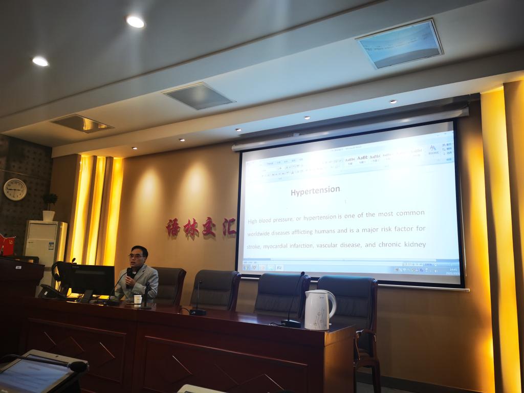 2021年10月13日下午,外国语学院组织英语语言教师与附属医院医生联合教研与备课活动,主讲医生为西安医学院第一附属医院内科主任医师韩居才,韩居才医生从事临床、教学、科研工作30余年,有丰富的双语临床、教学经验。曾获得陕西省科技进步三等奖一项,发表论文20余篇,数次获得中国医疗队援外先进个人,多次获得医院先进工作者和优秀教师。联合教研与备课活动涵盖一个疾病,涉及发病原因、疾病症状、治疗对策等。本次联合教研与备课活动有助于提升英语语言教师医科知识,为外国语学院师资转型奠定基础。(外国语学院 文/朱晓娟 图/马梓炫 审核/薛英利)