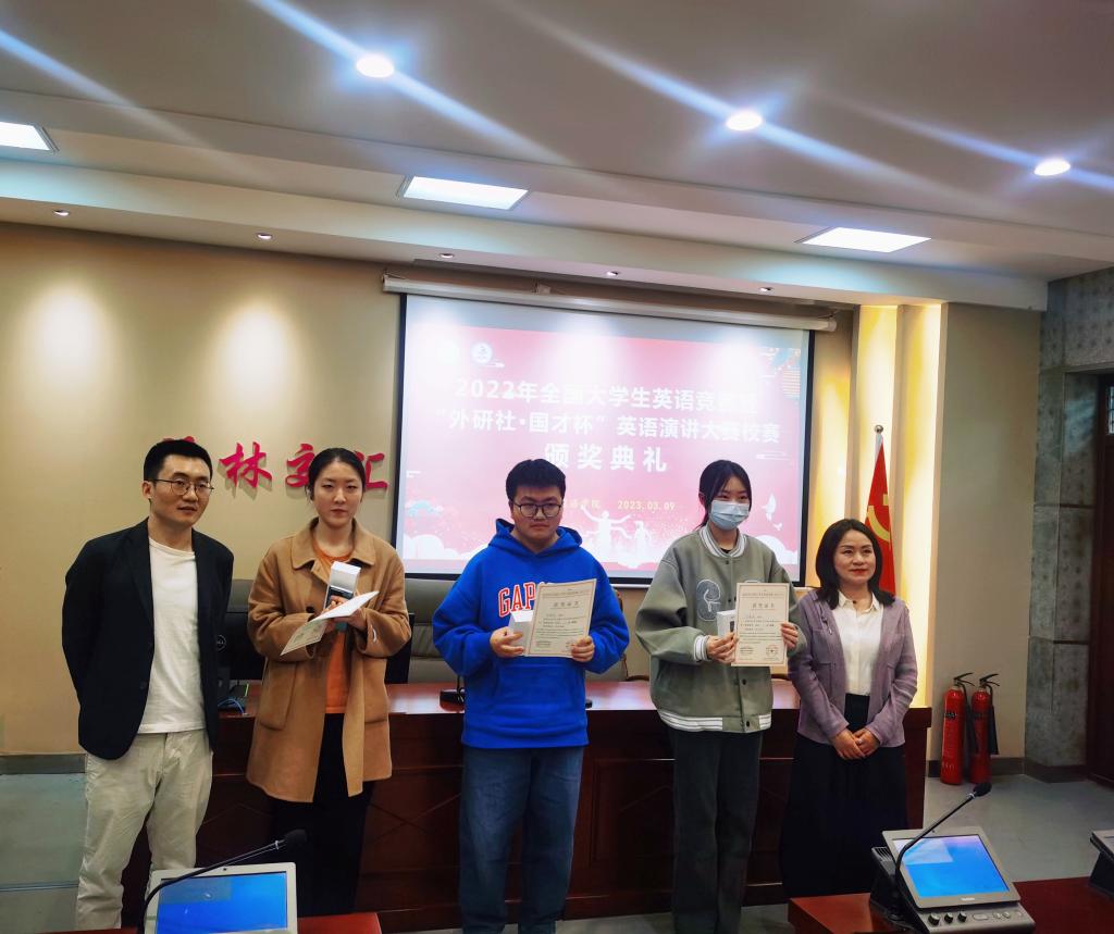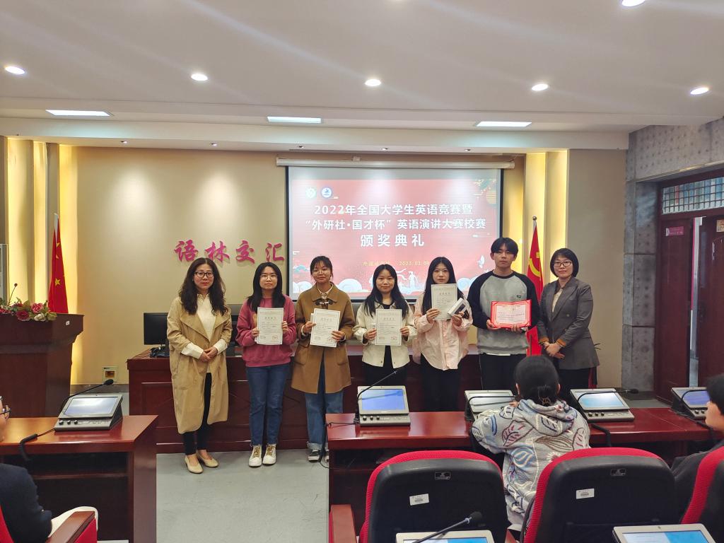 薛英利院长首先向获奖同学表示热烈祝贺,并希望获奖的同学能够继续加强语言学习,借助语言载体实现跨文化传播与交流,讲好中国故事。
