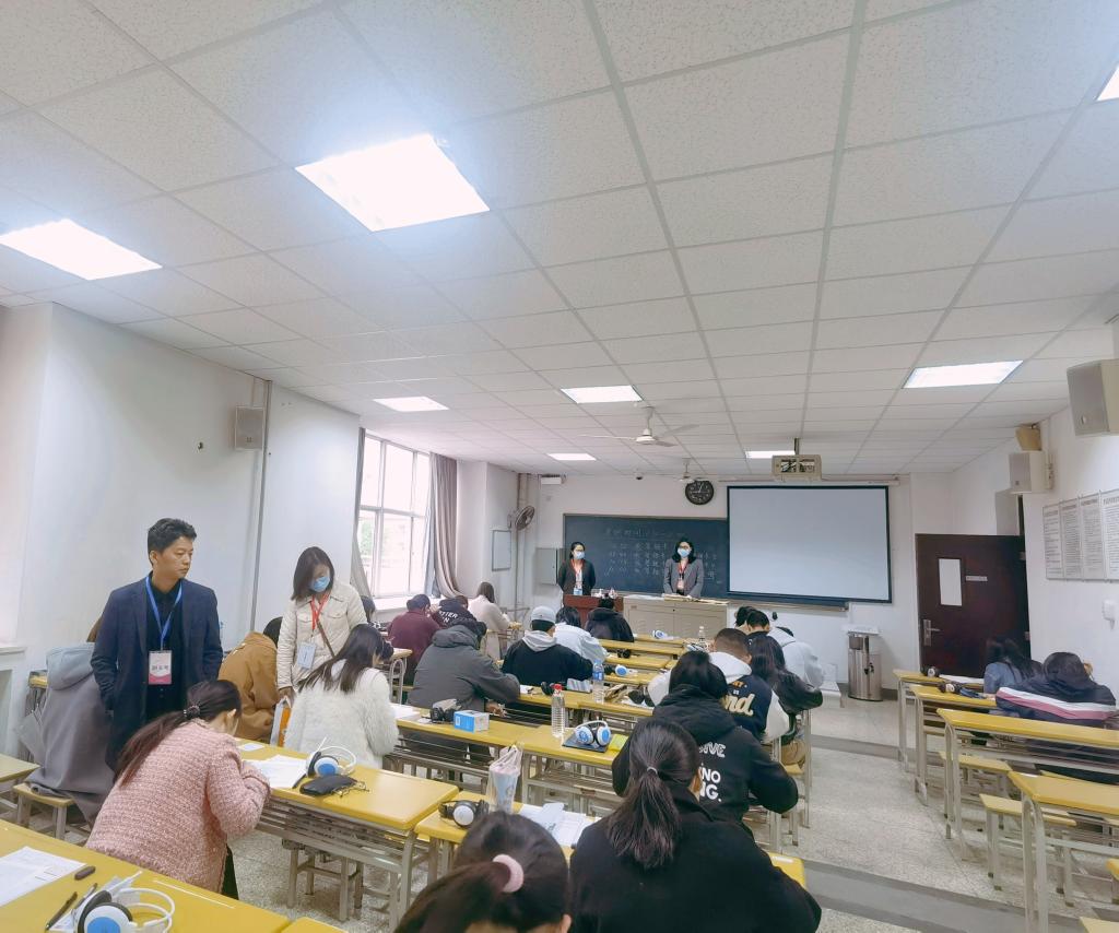4月20日晚19:00,外国语学院副院长薛婷对所有监考、考务人员进行了线上培训,培训内容包含考试须知、监考步骤、考试注意事项、考务分工等内容。薛婷院长对考试中可能出现的问题做了充分解读,并强调所有监考及考务人员必须恪守保密原则,考前、考中、考后各环节均须严格按照考试流程规范操作。语言实训中心于4月20-21日进行了为期两天的试音,并为考生提供备用耳机一箱,保证了每位考生听力部分考试的顺利进行。外国语学院学生科在考前对所有考生进行了诚信教育,为杜绝考试作弊,保证此次考试的公平、公正性奠定了坚实的基础。