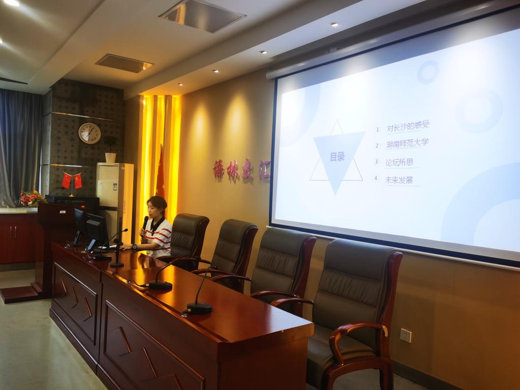 雷圆梦首先分享了自己研学的收获与心得。重量级专家学者的高质量学术报告引发了她的头脑风暴,其中湖南师范大学党委书记蒋洪新教授围绕外语专业发展现状和挑战的报告,指出英语高端人才的缺乏和ChatGPT出现的机遇与挑战,呼吁推动外语学科紧密为国家战略服务。谭方正教授围绕英语类专业的创新发展,提出了用外语讲好中国故事,利用科技创新学习方式的概念。而作为英语专业的学生,学生们应当不断提升自身综合实力,向高端方向发展,贴近国家发展和建设需求;还需强化自己的写作能力和思辨能力,这样才能在ChatGPT的冲击下立于不败之地。我们要坚信,人工智能永远无法替代人类,人类的人文关怀是人工智能永远无法共有的。除了高端化发展和对抗ChatGPT冲击外,英语专业学生还需利用科技创新学习方式,用外语讲好中国故事,厚植国际视角,拓宽自身视野,多思考自身未来的发展方向和所需素养。眼中有路,步履不停。雷圆梦坦言:“只有走出去,多看看外面世界,才更能意识到自身的不足,明晰前进的方向。”并用荀子《劝学》中的“不登高山,不知天之高也;不临深溪,不知地之厚也”总结此次研学。(外国语学院 文/何泽涵 雷圆梦 图/薛英利 审核/薛英利)
