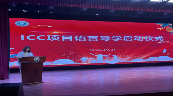 10月21日,我校2025级ICC项目语言导学启动仪式在校学术报告厅举行,教务处副处长李静、外国语学院院长薛英利、副院长薛婷参加启动仪式。仪式由外国语学院教学科科长周哲主持。