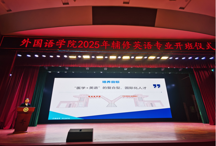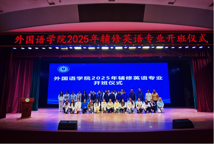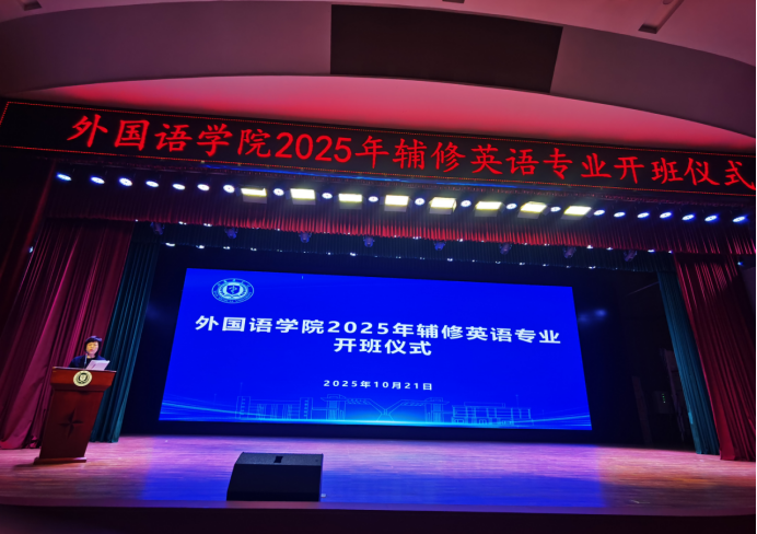 辅修英语负责人、2025级全体辅修新生参加开班仪式。(外国语学院 文/图 周哲 审核/薛婷 薛英利 刘军林)